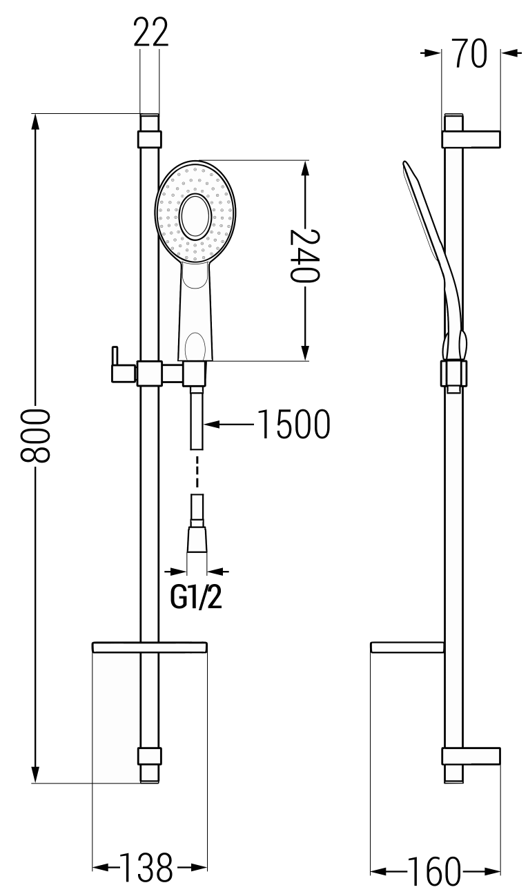 Héicht: 800 mm