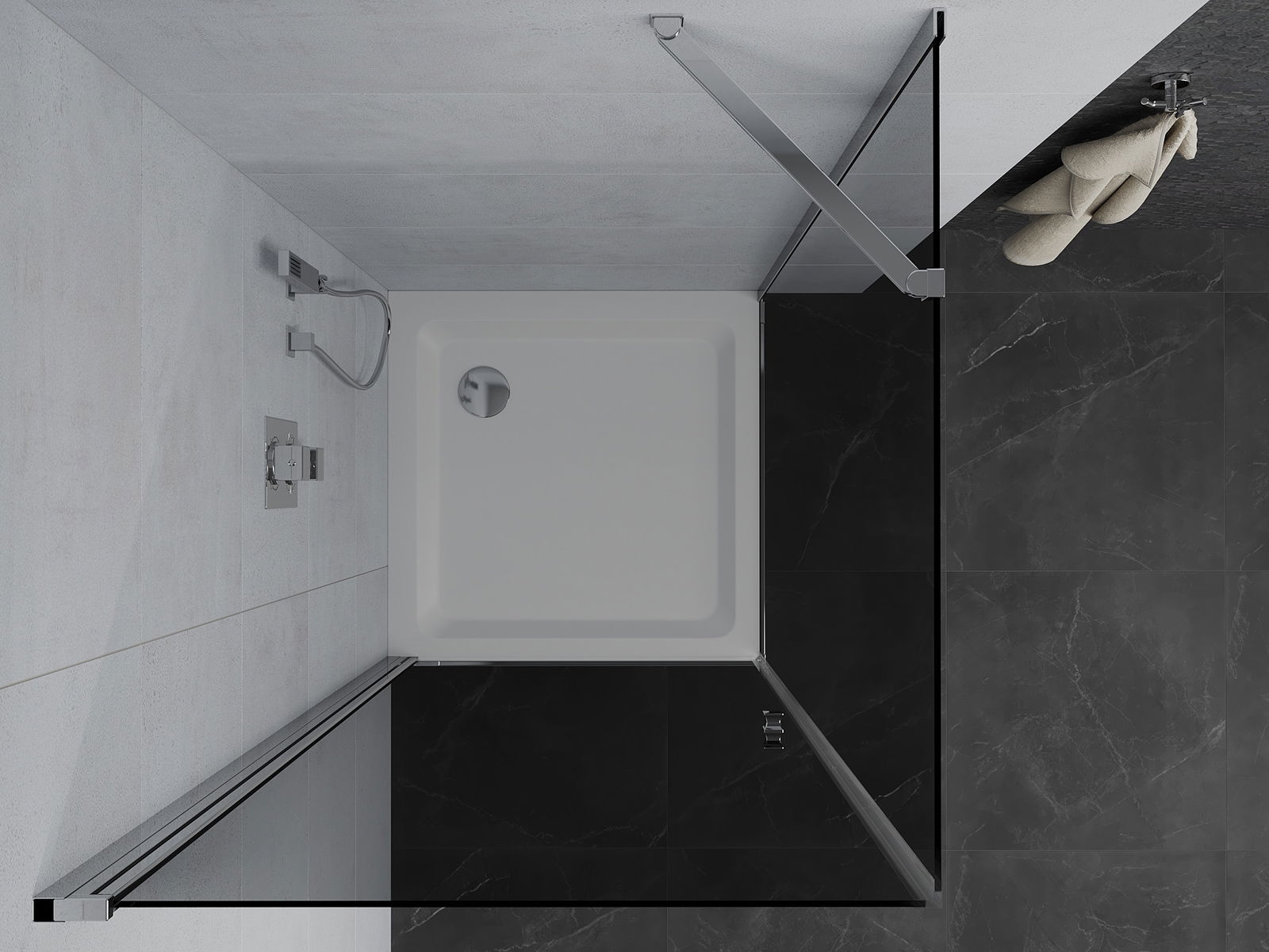 Dank dem universelle Montagesystem kënnen d'Duschdieren op der lénker oder op der rietser Säit montéiert ginn, ofhängeg vun de Besoinen. Duerch dëst kënns du de Buedzëmmer-Dusch mat Liichtegkeet un de Raum upassen.