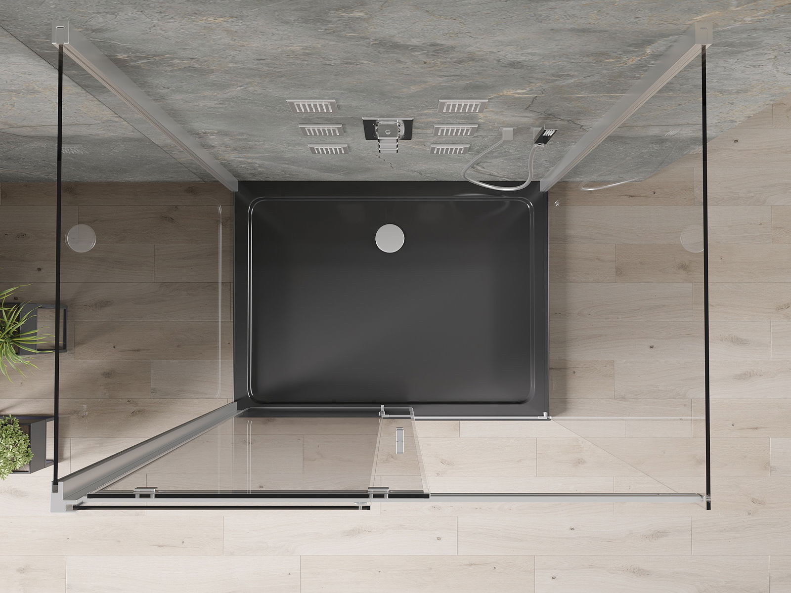 Mexen Omega-3S 3-Säite Duschkabinn, verschiebbar 140x90 cm, transparent, chrom + Flat Duschtablett - 825-140-090-01-00-3s-4070
