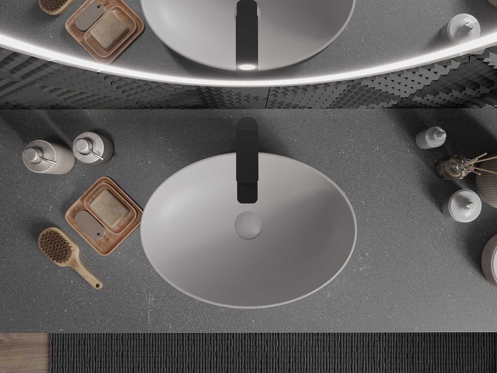 Eng keramiks Uewerfläch mat matte Textur ënnersträicht de Charakter vun der Faarf vum Produkt perfekt a gëtt him en eenzegaartegt an aussoosstarke Finish. Déi subtil Struktur vun der matte Keramik bréngt Eleganz an d'Buedzëmmer an schaaft en ästheteschen Raum.