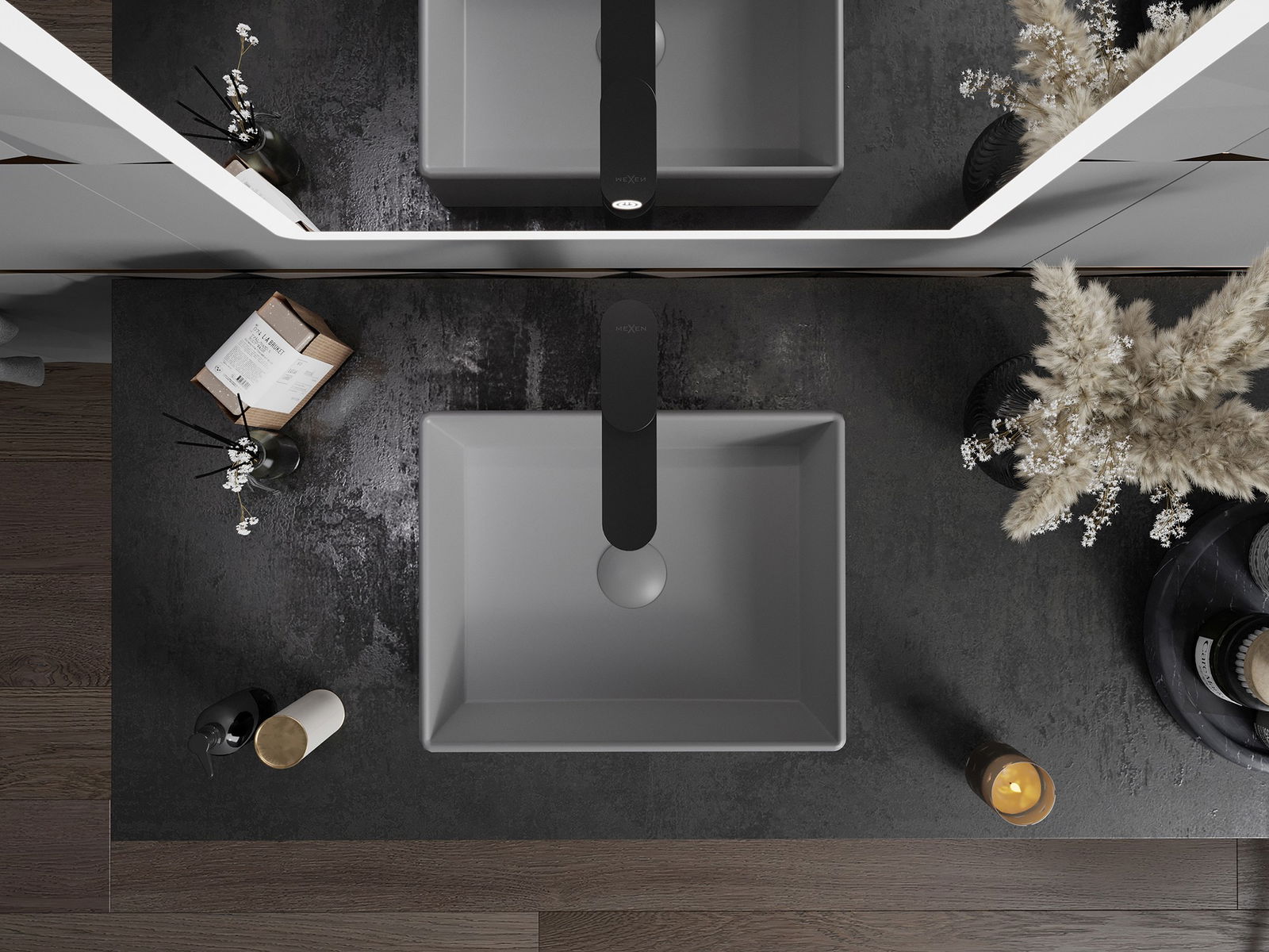 Eng keramiks Uewerfläch mat matte Textur ënnersträicht de Charakter vun der Faarf vum Produkt perfekt a gëtt him en eenzegaartegt an aussoosstarke Finish. Déi subtil Struktur vun der matte Keramik bréngt Eleganz an d'Buedzëmmer an schaaft en ästheteschen Raum.