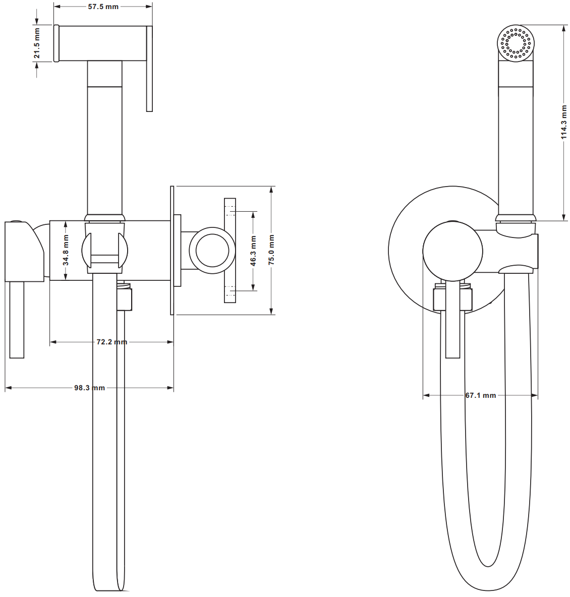 Héicht vun der Duschkapp: 114,3 mm