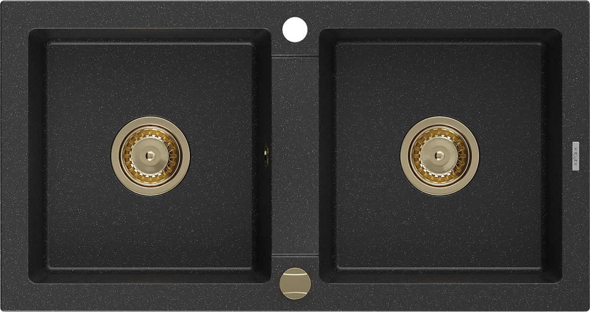 Mexen Mario zwee-Kummer Granitspullsteen 820 x 436 mm, schwaarz/sëlwer Metalik, gëllene Siphon - 6504822000-73-G