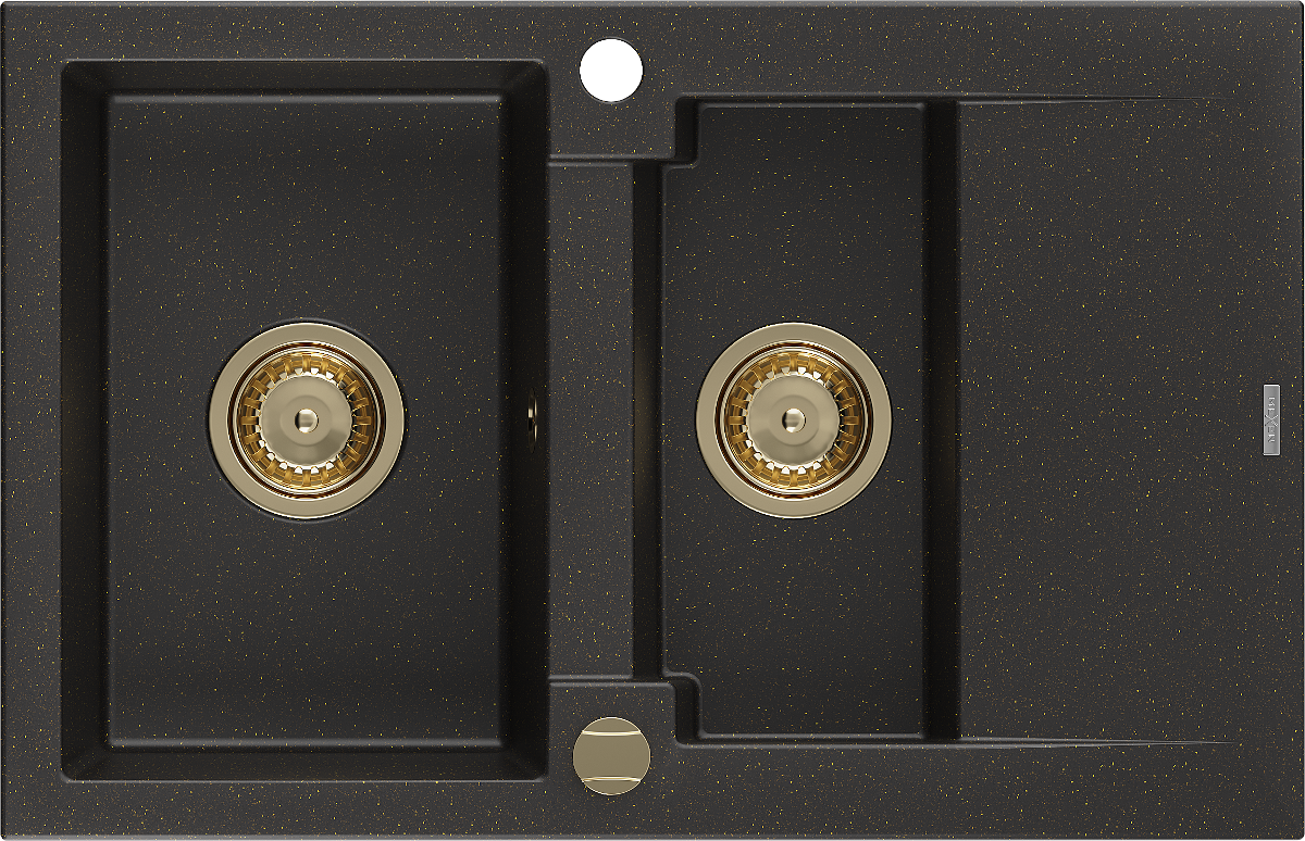 Mexen Gaspar Granitspullat mit 1,5 Kummeren an Drëpschutz 737 x 475 mm, schwaarz/gëllene Metalik, gëllene Syphon
