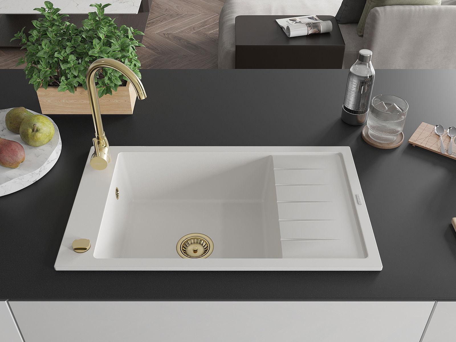 D'Uewerfläch vum Spullstee ass fleck- a verfärbungsresistent, wat se einfach ze botzen mécht an hir Faarf iwwer eng laang Zäit vum Gebrauch behalen léisst. Esthetesch an praktesch Ergänzung fir all Kichen.