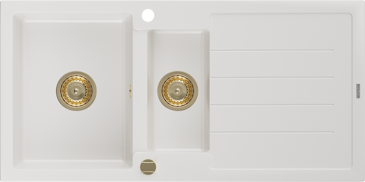 Den Spullsteen huet 2 virberäitet Lächer mat engem Duerchmiesser vun 35 mm, déi selbststänneg ausgeschloen kënne ginn. Se kënne fir d'Montage vun engem Flëssegkeetsspender benotzt ginn, deen d'Präsenz vu Plastikfläschen an der Kichen eliminéiert an hir en elegant Finish gëtt.