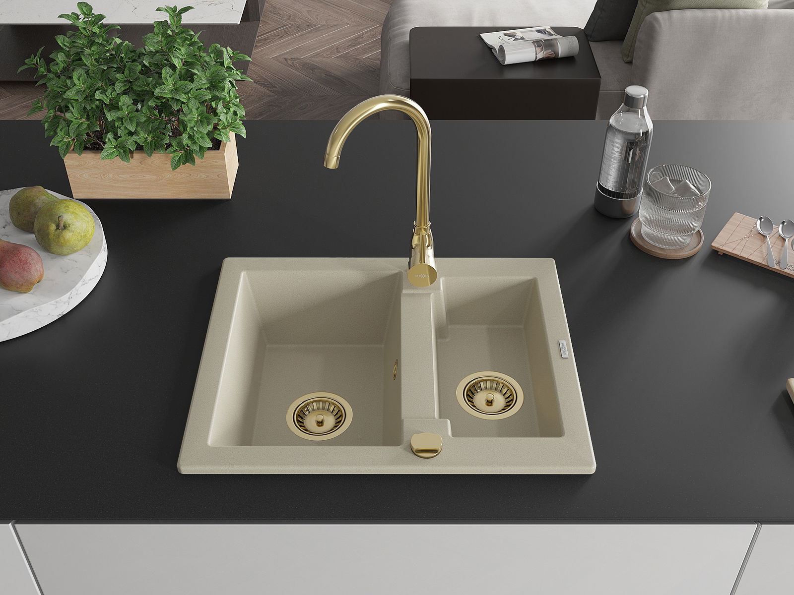 D'Uewerfläch vum Spullstee ass fleck- a verfärbungsresistent, wat se einfach ze botzen mécht an hir Faarf iwwer eng laang Zäit vum Gebrauch behalen léisst. Esthetesch an praktesch Ergänzung fir all Kichen.