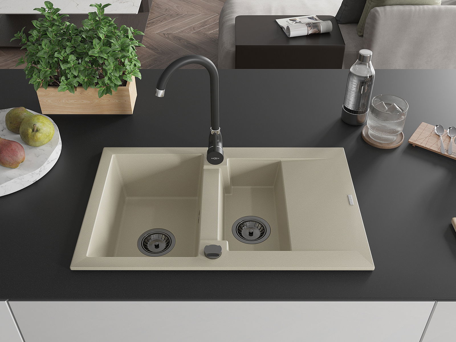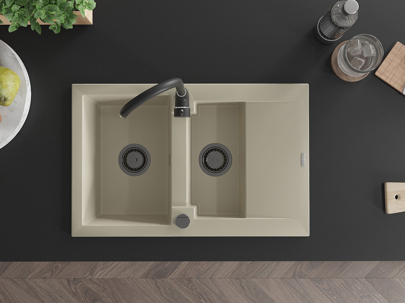 Den Ëmwäschbecken ass aus héichwäertege Granit gemaach. Et stellt eng elegant awer virun allem praktesch Ergänzung fir all Kichen duer, onofhängeg vun hirem Stil. Déi héich Qualitéit an Haltbarkeet vum Granit suergen fir méi järelaang Benotzung.