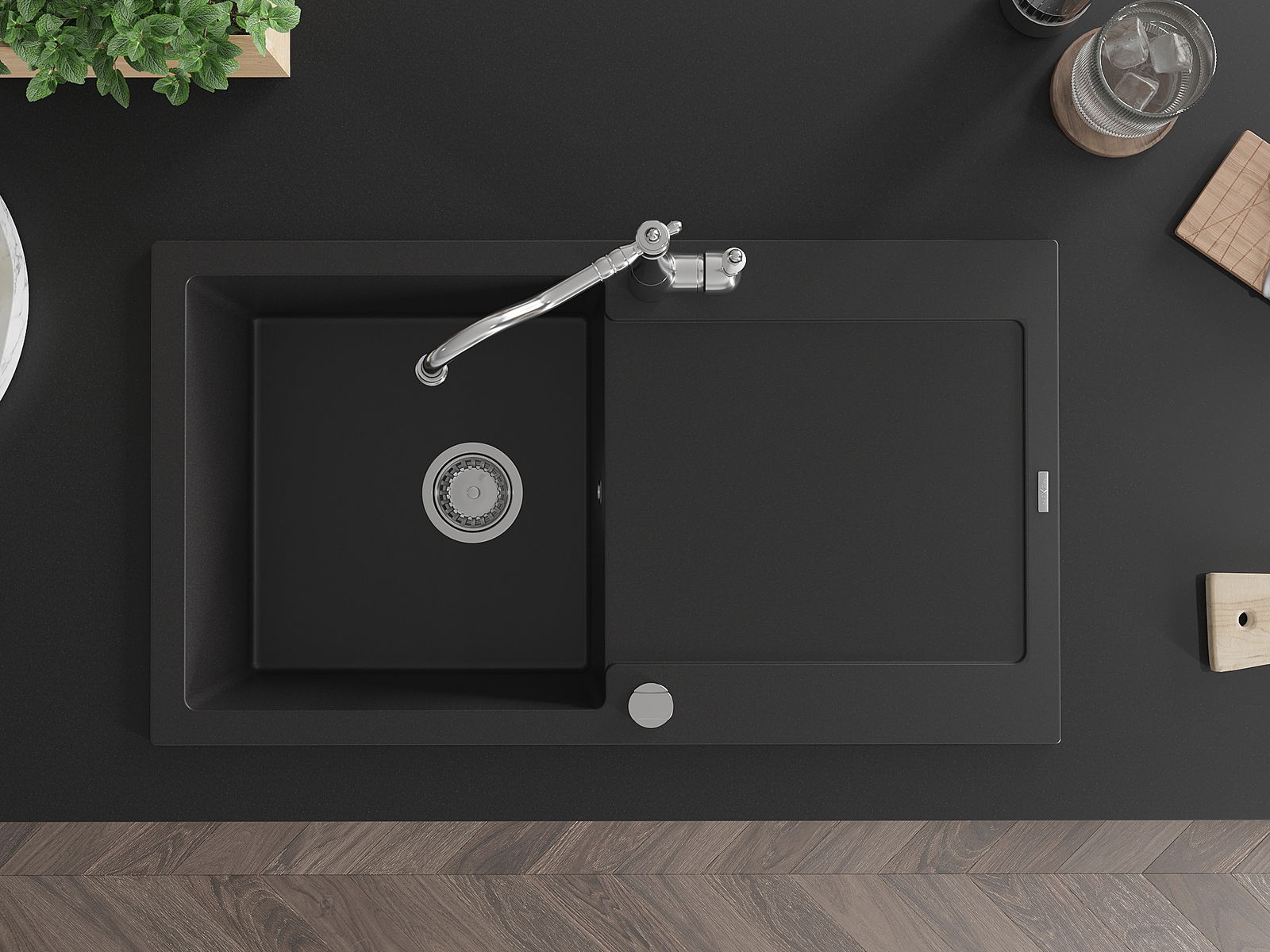 Den Ëmwäschbecken ass aus héichwäertege Granit gemaach. Et stellt eng elegant awer virun allem praktesch Ergänzung fir all Kichen duer, onofhängeg vun hirem Stil. Déi héich Qualitéit an Haltbarkeet vum Granit suergen fir méi järelaang Benotzung.