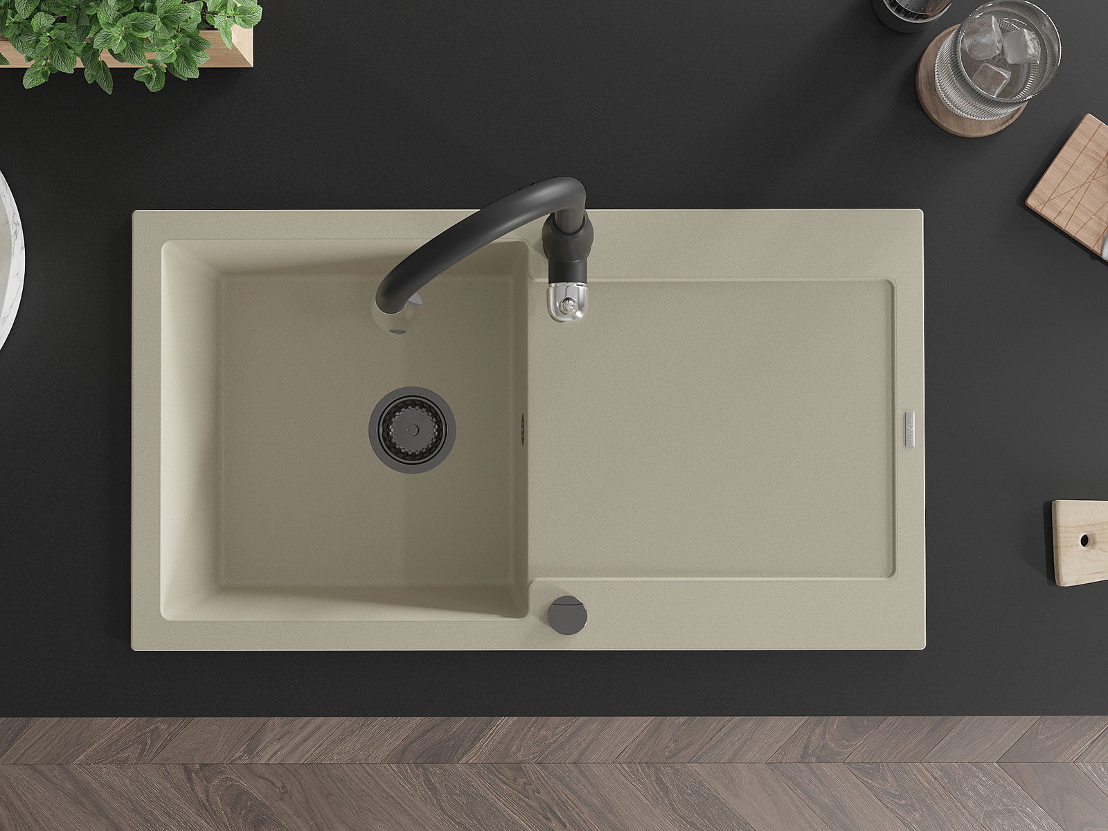 D'Uewerfläch vum Spullstee ass fleck- a verfärbungsresistent, wat se einfach ze botzen mécht an hir Faarf iwwer eng laang Zäit vum Gebrauch behalen léisst. Esthetesch an praktesch Ergänzung fir all Kichen.