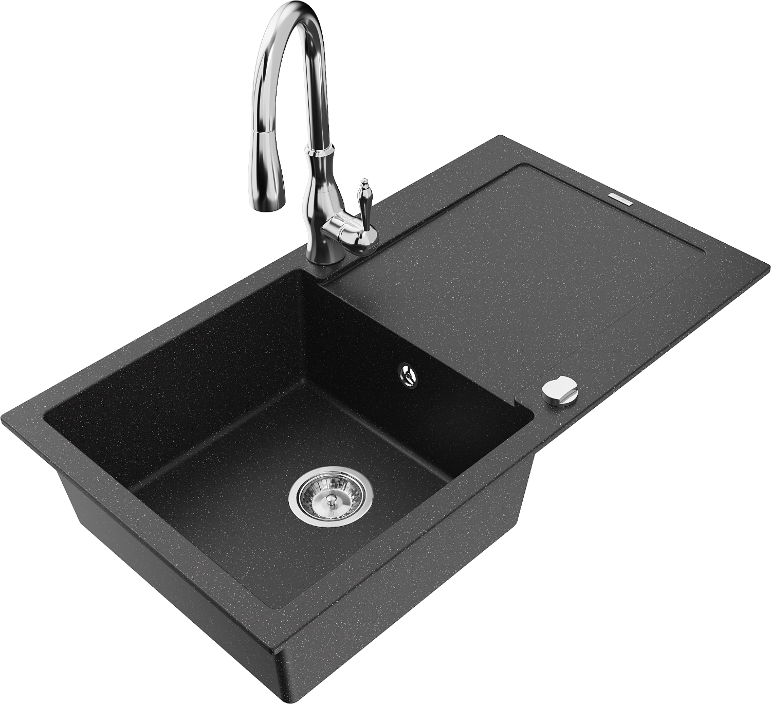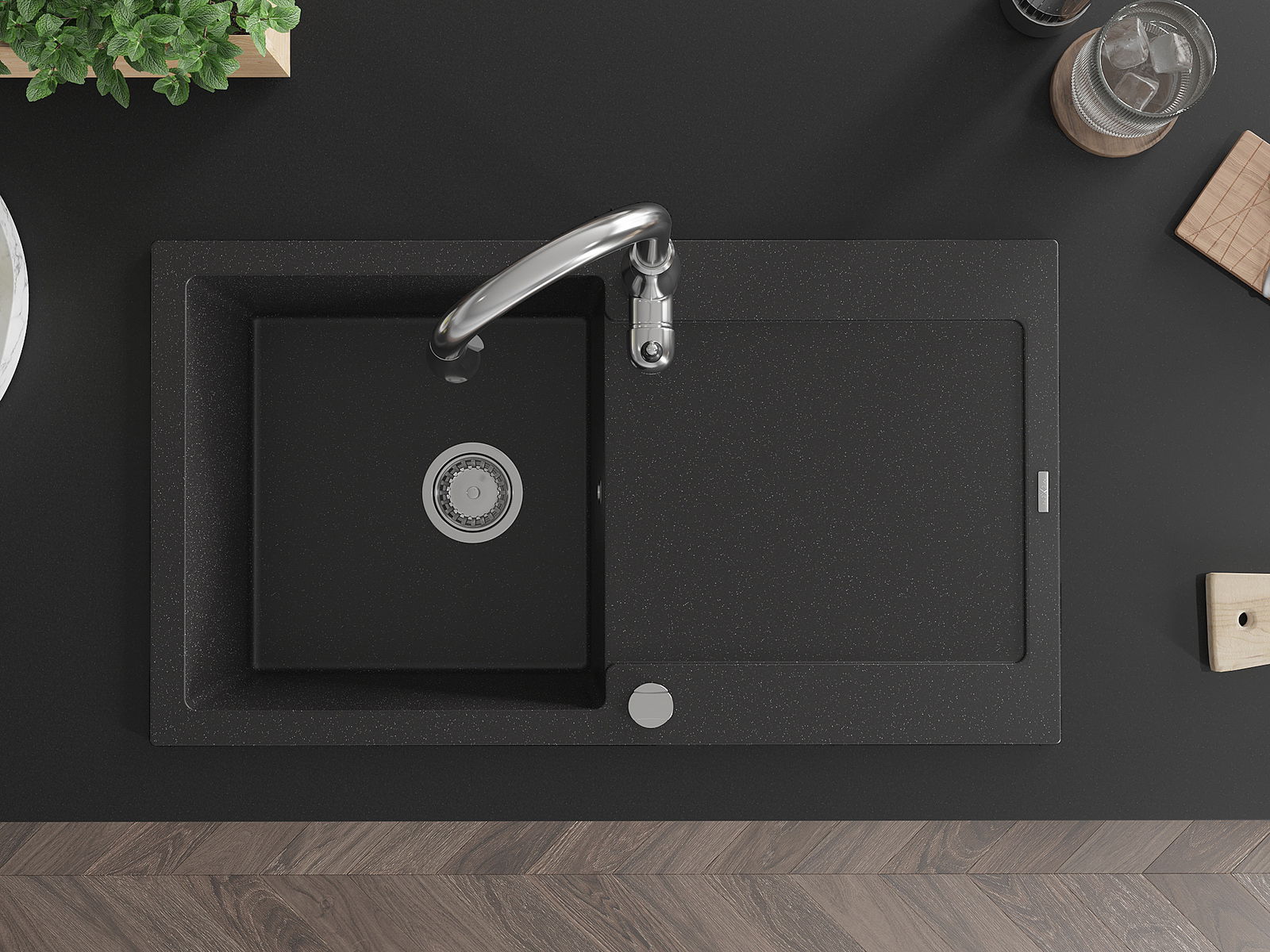 Mexen Leo Granit-Ëmëfçëk mat Kichenë mat më Këscht Savita, schwarz/sëlwërmetallic - 6501-73-672601-00