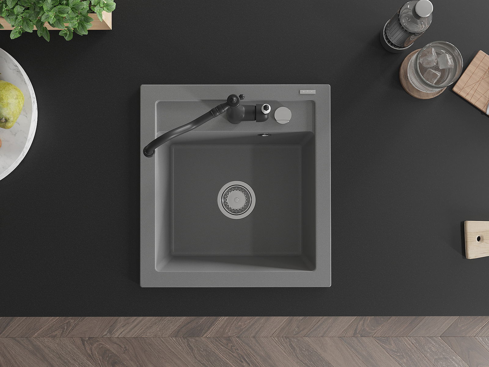 Mexen Vito Granit-Spullsteen mat engem Kichenkran Carla, gro - 6503-71-670700-70