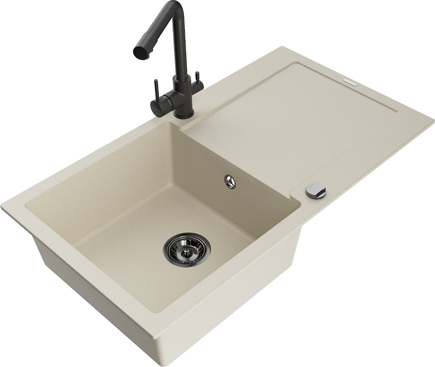 Mexen Leo Granit Spullsteen mat 1-Kummer mat Oflaaf an Kichenhahn Duero, beige - 6501-69-671600-70