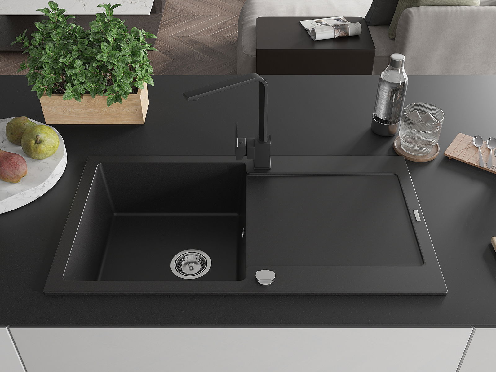 D'Uewerfläch vum Spullstee ass fleck- a verfärbungsresistent, wat se einfach ze botzen mécht an hir Faarf iwwer eng laang Zäit vum Gebrauch behalen léisst. Esthetesch an praktesch Ergänzung fir all Kichen.