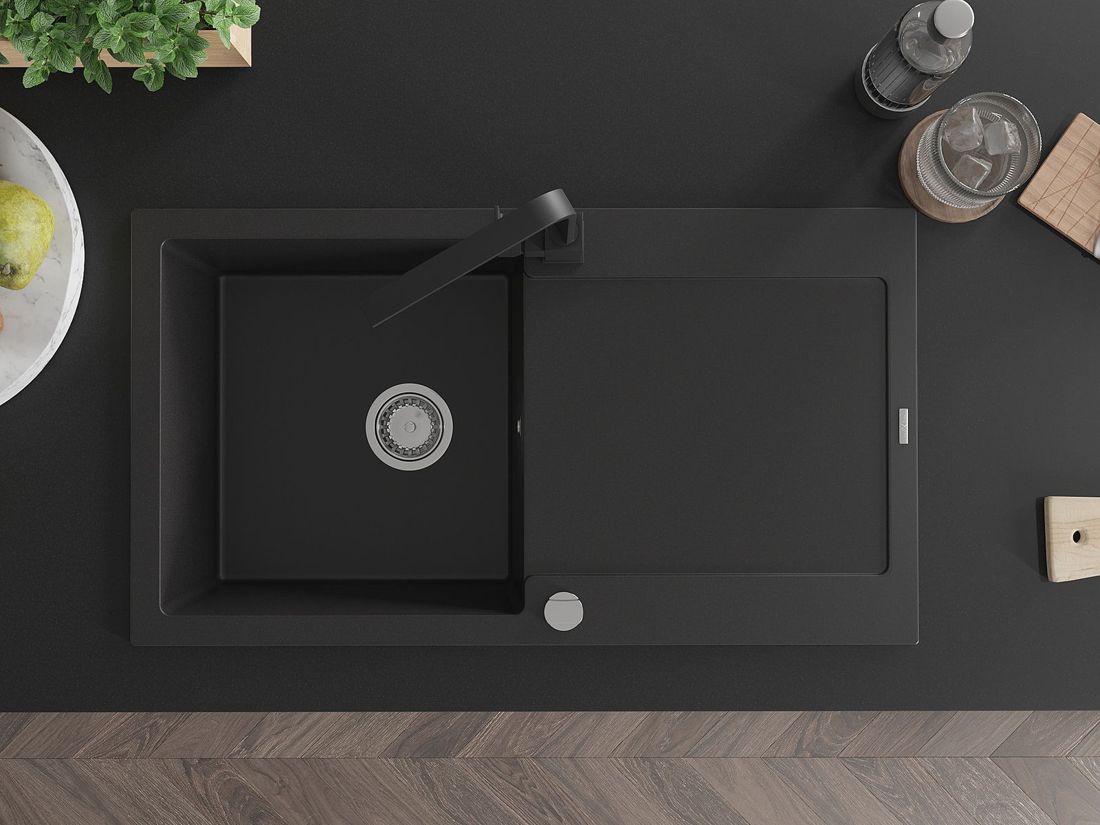 Den Ëmwäschbecken ass aus héichwäertege Granit gemaach. Et stellt eng elegant awer virun allem praktesch Ergänzung fir all Kichen duer, onofhängeg vun hirem Stil. Déi héich Qualitéit an Haltbarkeet vum Granit suergen fir méi järelaang Benotzung.