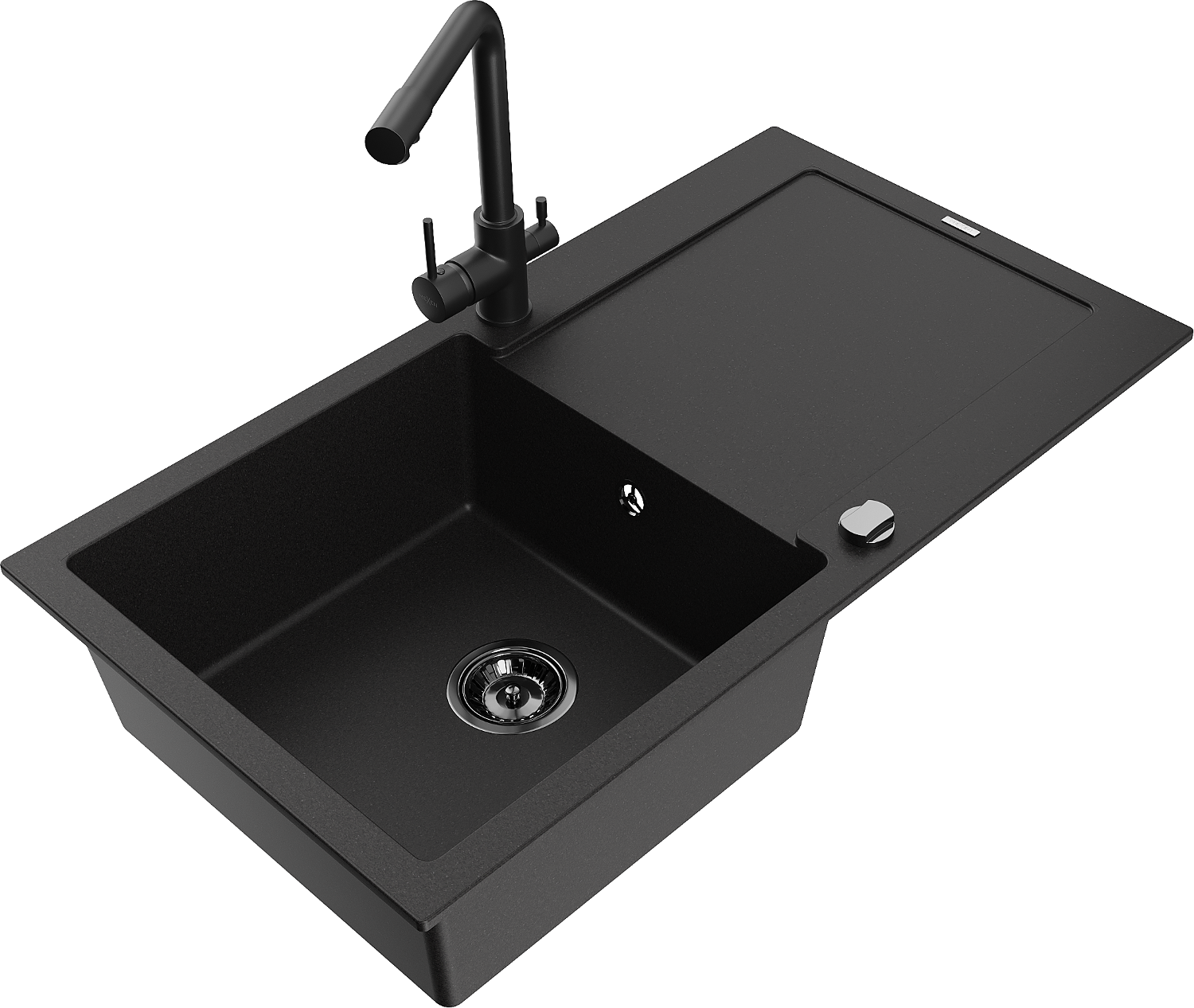 Mexen Leo 1-Komoresche Granit-Spullsteen mat Drainboard an Kichekraan Duero, schwaarz - 6501-77-671600-70-B