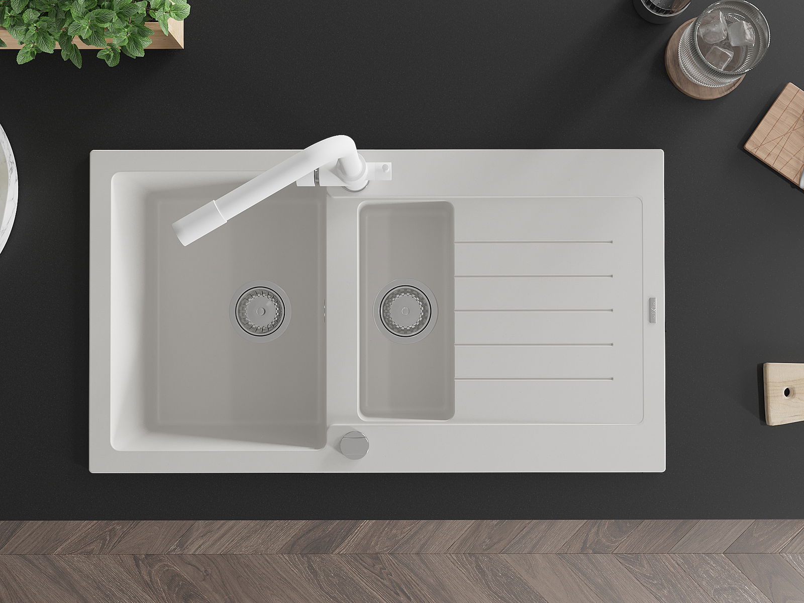 D'Uewerfläch vum Spullstee ass fleck- a verfärbungsresistent, wat se einfach ze botzen mécht an hir Faarf iwwer eng laang Zäit vum Gebrauch behalen léisst. Esthetesch an praktesch Ergänzung fir all Kichen.