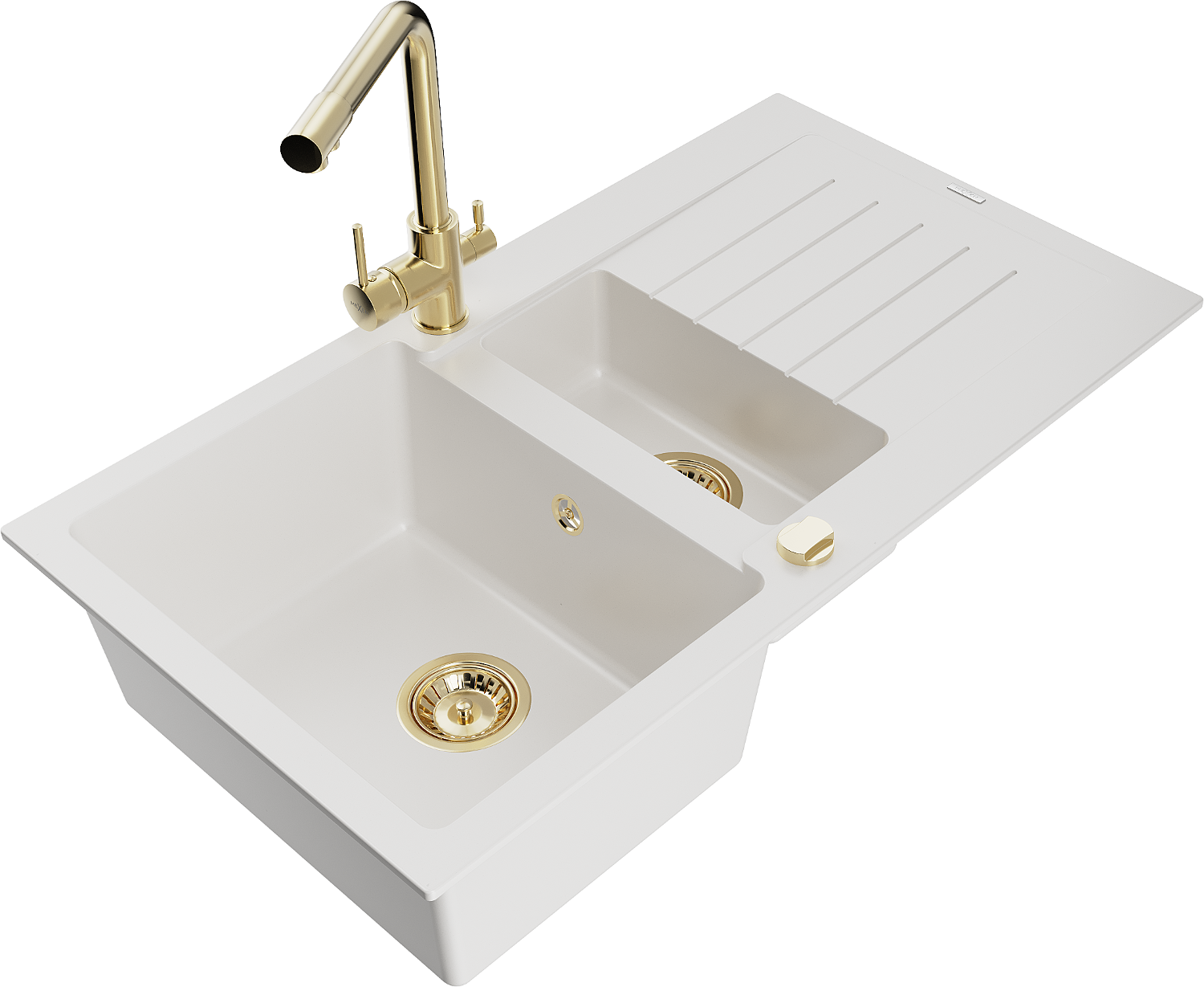 Mexen Matias Granitspullstell mat 1,5 Kummer mat Drëpsaatz a Kichenkrunn Duero, wäiss - 6502-20-671600-50