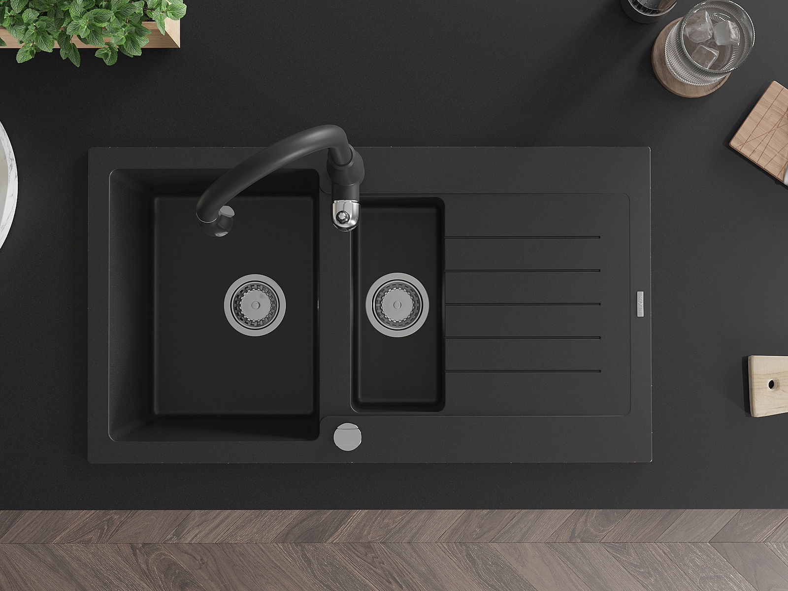 Mexen Matias Granitspullsig mat zwou Schëffer mat Oflaaf an Kichekraan Savita, schwaarz - 6502-77-672601-70