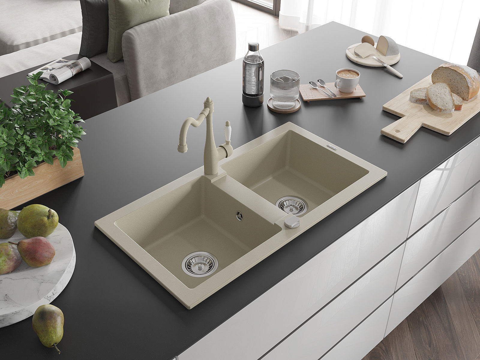 Mexen Mario Granitespull zwee-Kammer mat Kichekran Carla, beige - 6504-69-670700-69