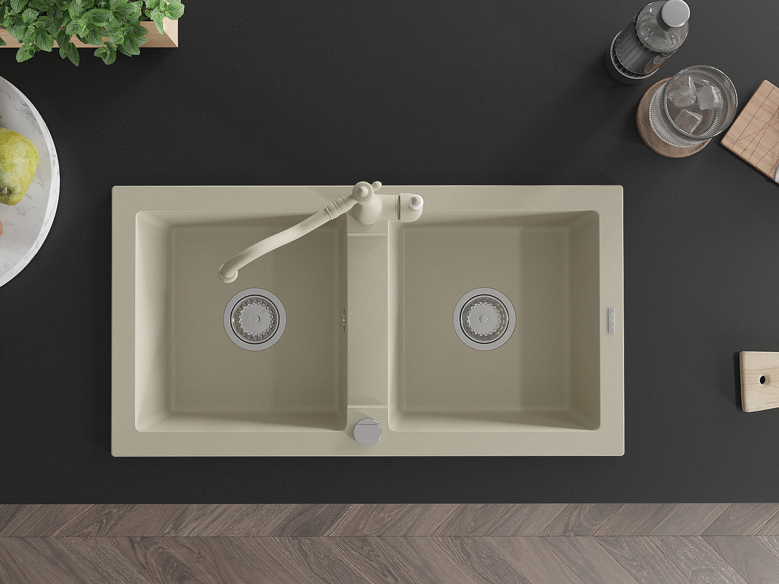 D'Uewerfläch vum Spullbecken ass ganz gutt gehärt, et ass aussergewéinlech resistent géint mechanesch Schied a Kratzer. De bestännege Materialausféierung erlaabt Iech d'gutt Ausgesinn vum Spullbecken fir vill Joeren ze genéissen.