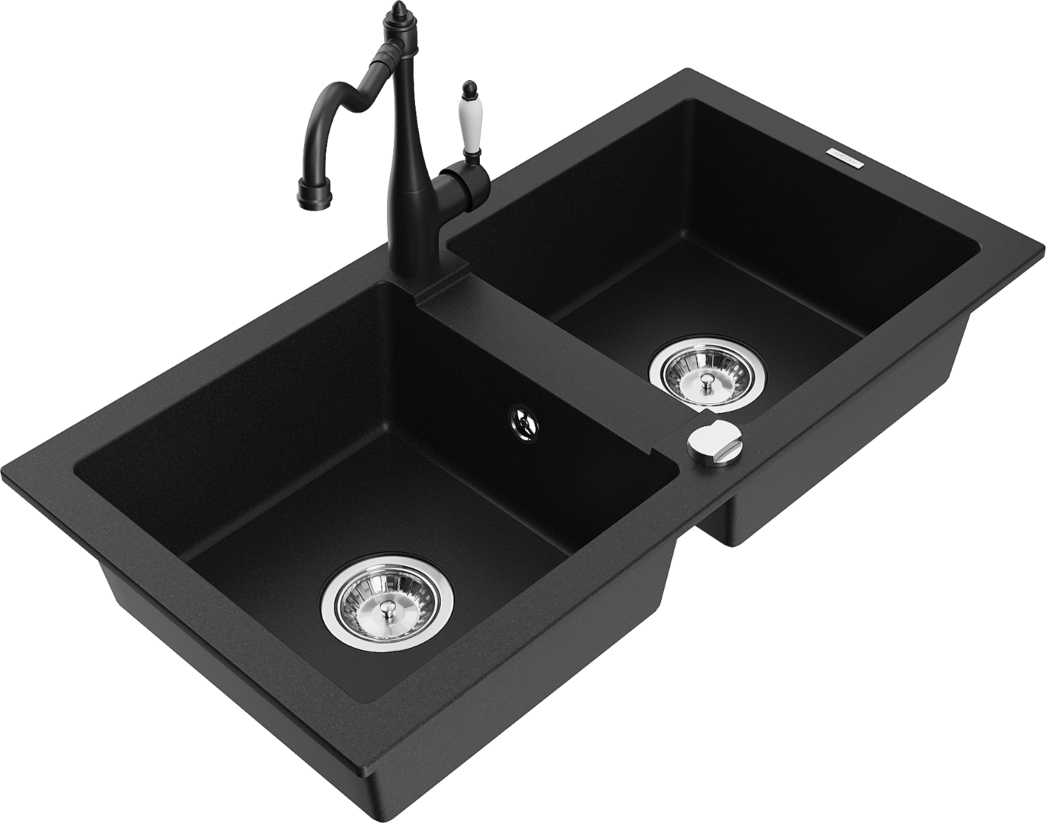 Mexen Mario Granitspullut mat 2-Kummer mat Kichenbatterie Carla, schwaarz - 6504-77-670700-70