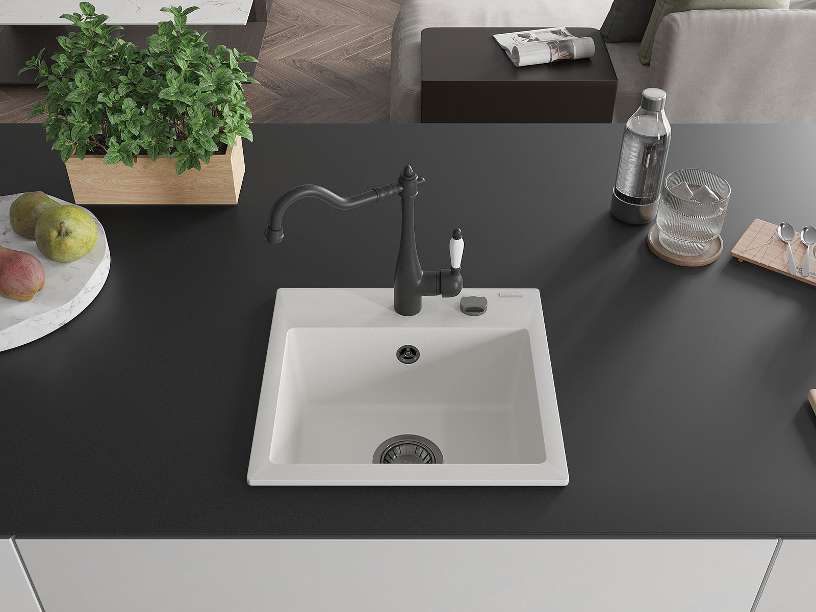D'Uewerfläch vum Spullstee ass fleck- a verfärbungsresistent, wat se einfach ze botzen mécht an hir Faarf iwwer eng laang Zäit vum Gebrauch behalen léisst. Esthetesch an praktesch Ergänzung fir all Kichen.