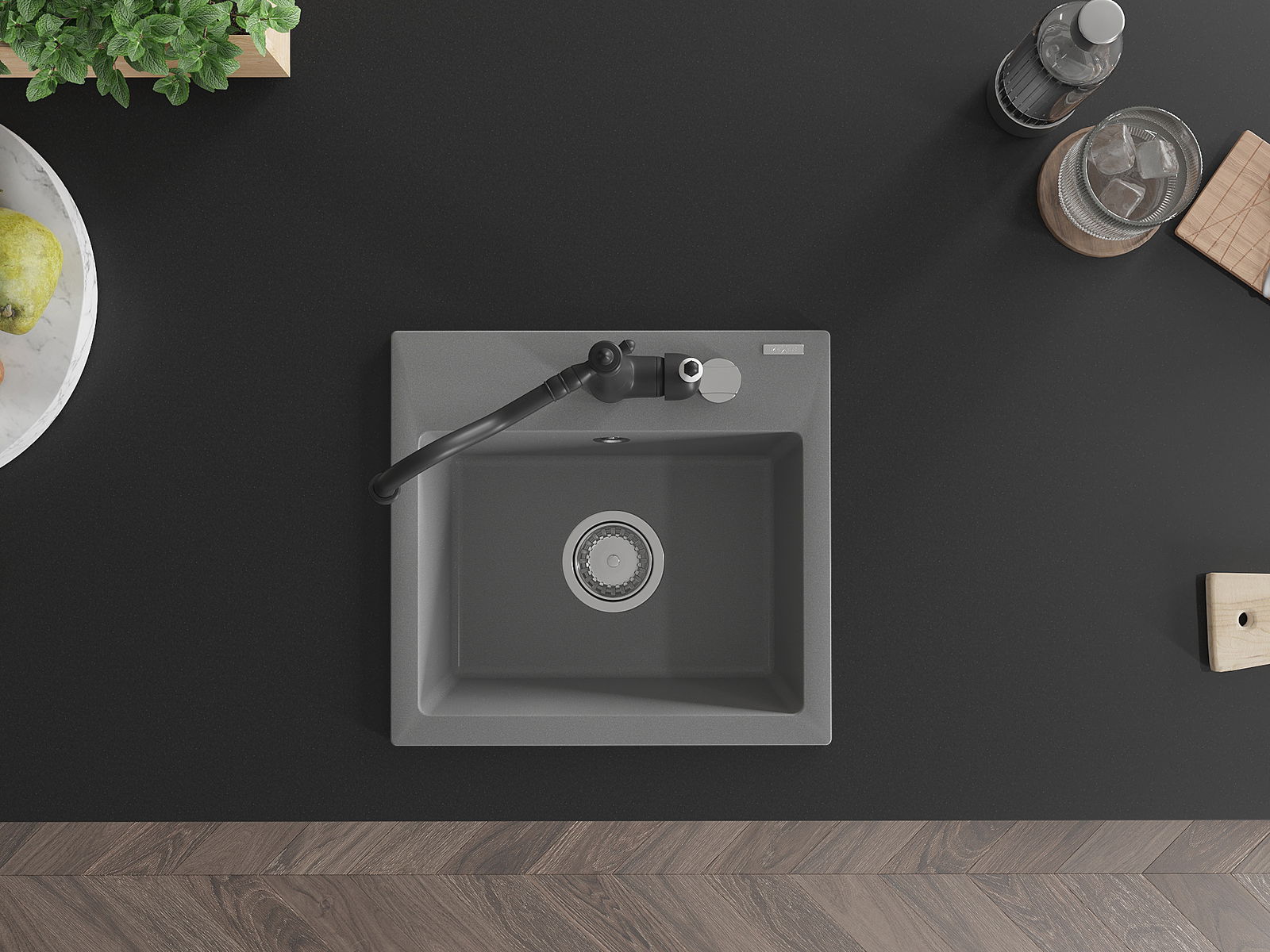 Den Ëmwäschbecken ass aus héichwäertege Granit gemaach. Et stellt eng elegant awer virun allem praktesch Ergänzung fir all Kichen duer, onofhängeg vun hirem Stil. Déi héich Qualitéit an Haltbarkeet vum Granit suergen fir méi järelaang Benotzung.