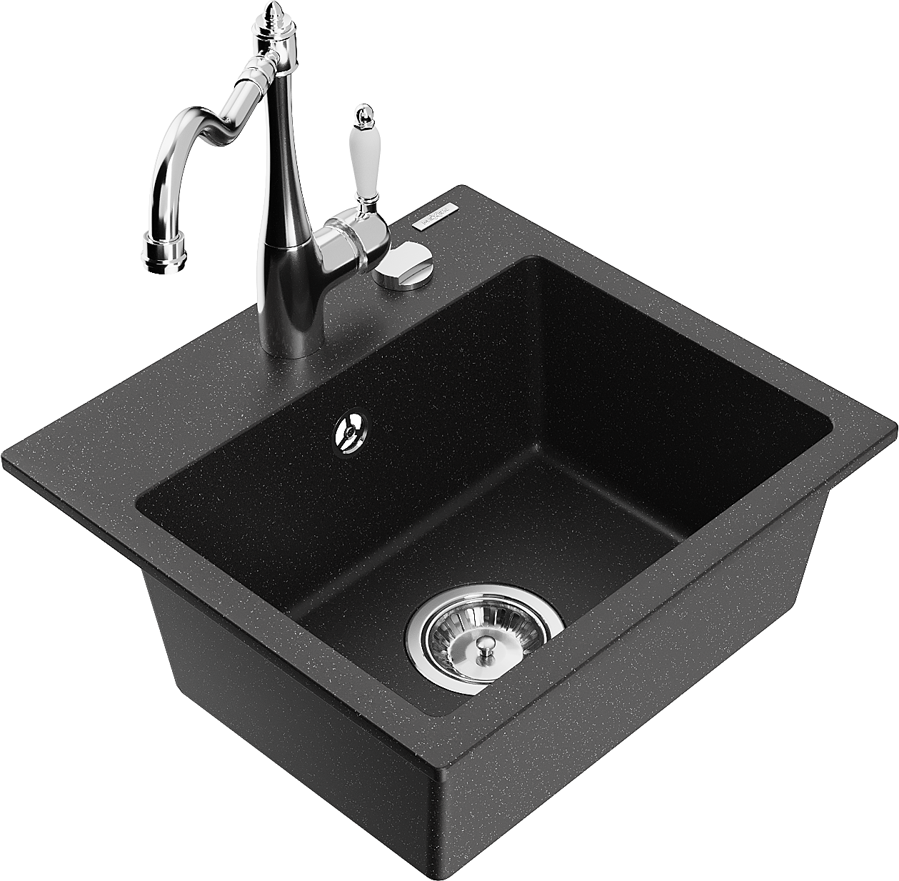Mexen Milo Granit Spullsteen mat enger Kichenkran Carla, schwaarz/sëlwermetallesch - 6505-73-670700-00