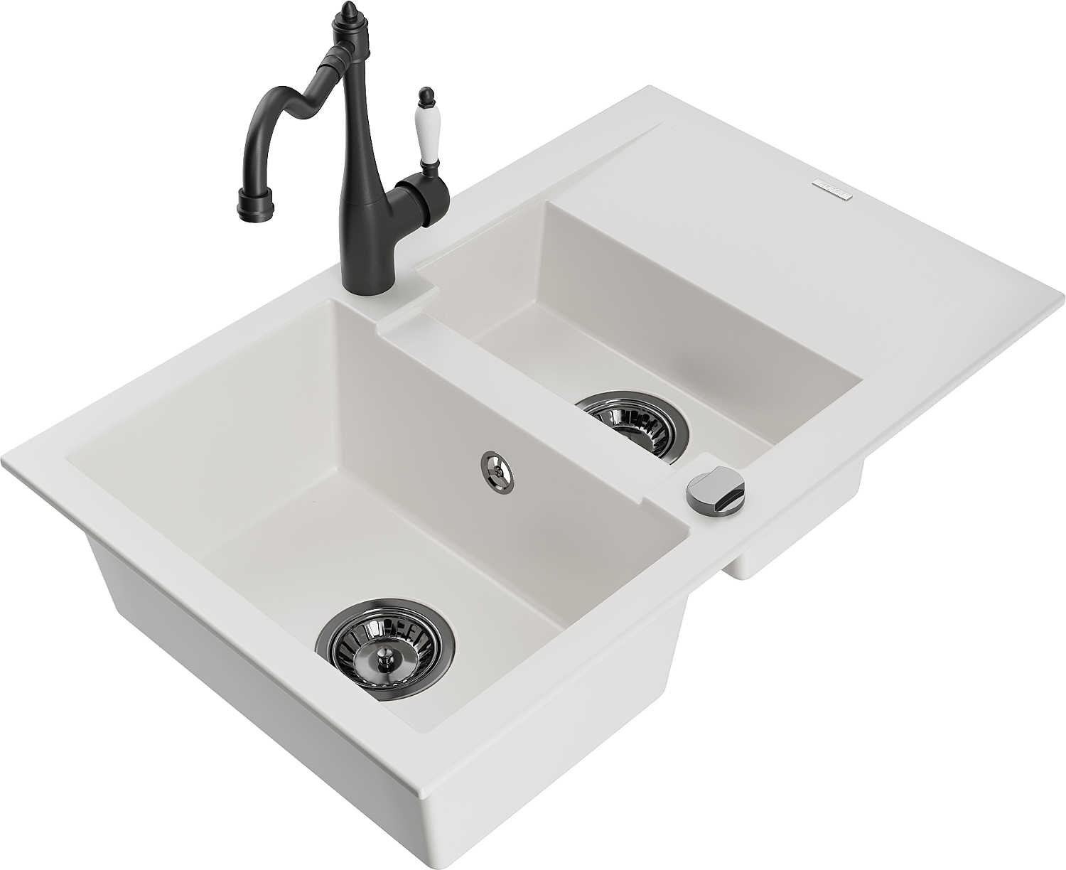 Mexen Gaspar Granitspullvermesser 1,5-Komor mat Drëpsbrett an Kichenkran Carla, wäiss - 6507-20-670700-70