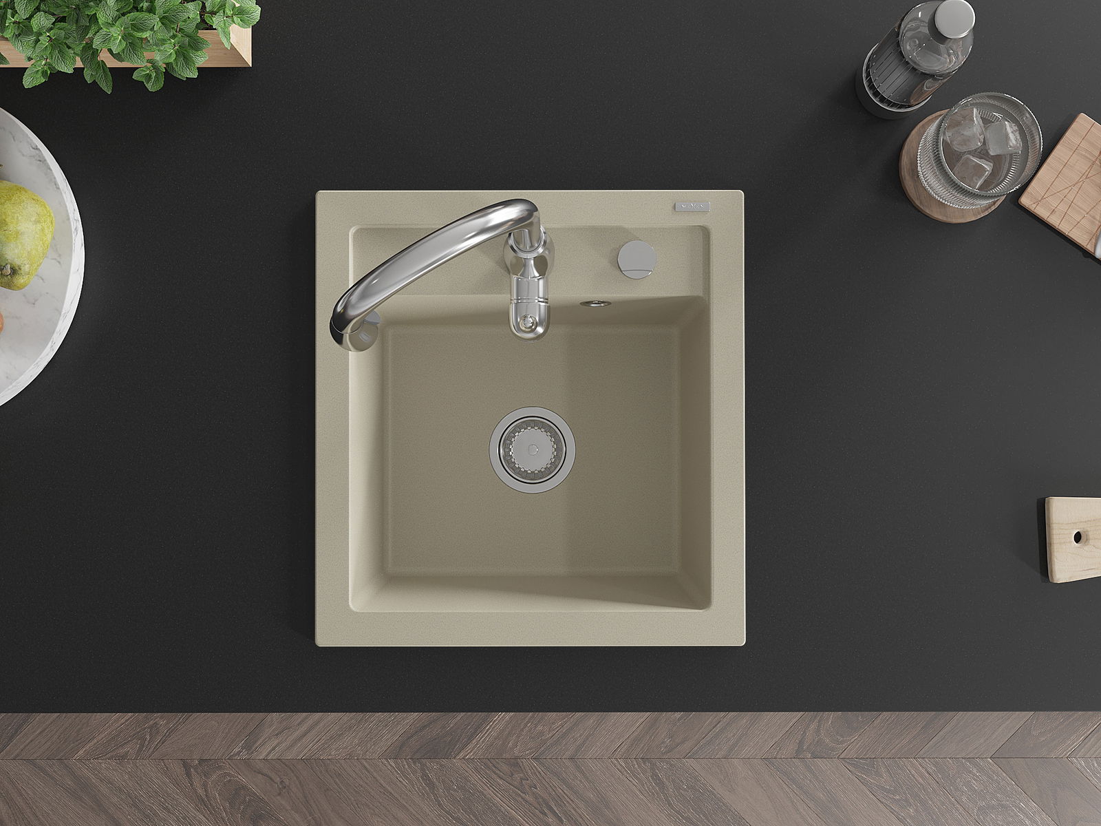 D'Uewerfläch vum Spullstee ass fleck- a verfärbungsresistent, wat se einfach ze botzen mécht an hir Faarf iwwer eng laang Zäit vum Gebrauch behalen léisst. Esthetesch an praktesch Ergänzung fir all Kichen.