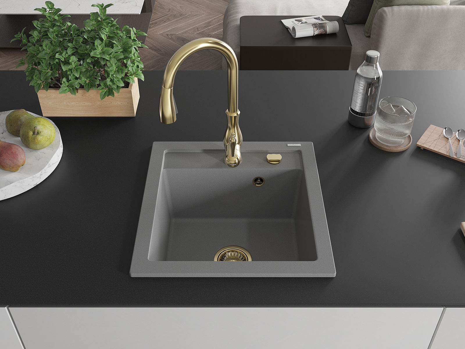 Mexen Vito Granit Kicheldisch 1-Komore mat Kichekran Savita, gro - 6503-71-672601-50