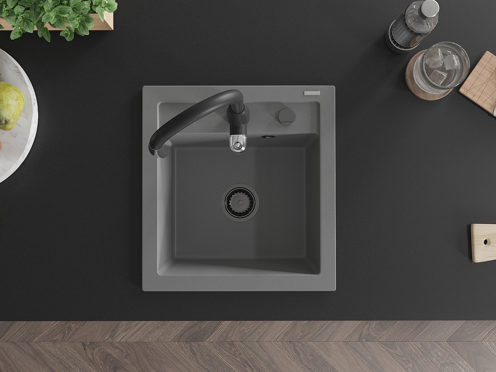D'Uewerfläch vum Spullbecken ass ganz gutt gehärt, et ass aussergewéinlech resistent géint mechanesch Schied a Kratzer. De bestännege Materialausféierung erlaabt Iech d'gutt Ausgesinn vum Spullbecken fir vill Joeren ze genéissen.