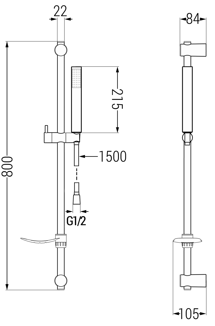 Stangbreet: 22 mm