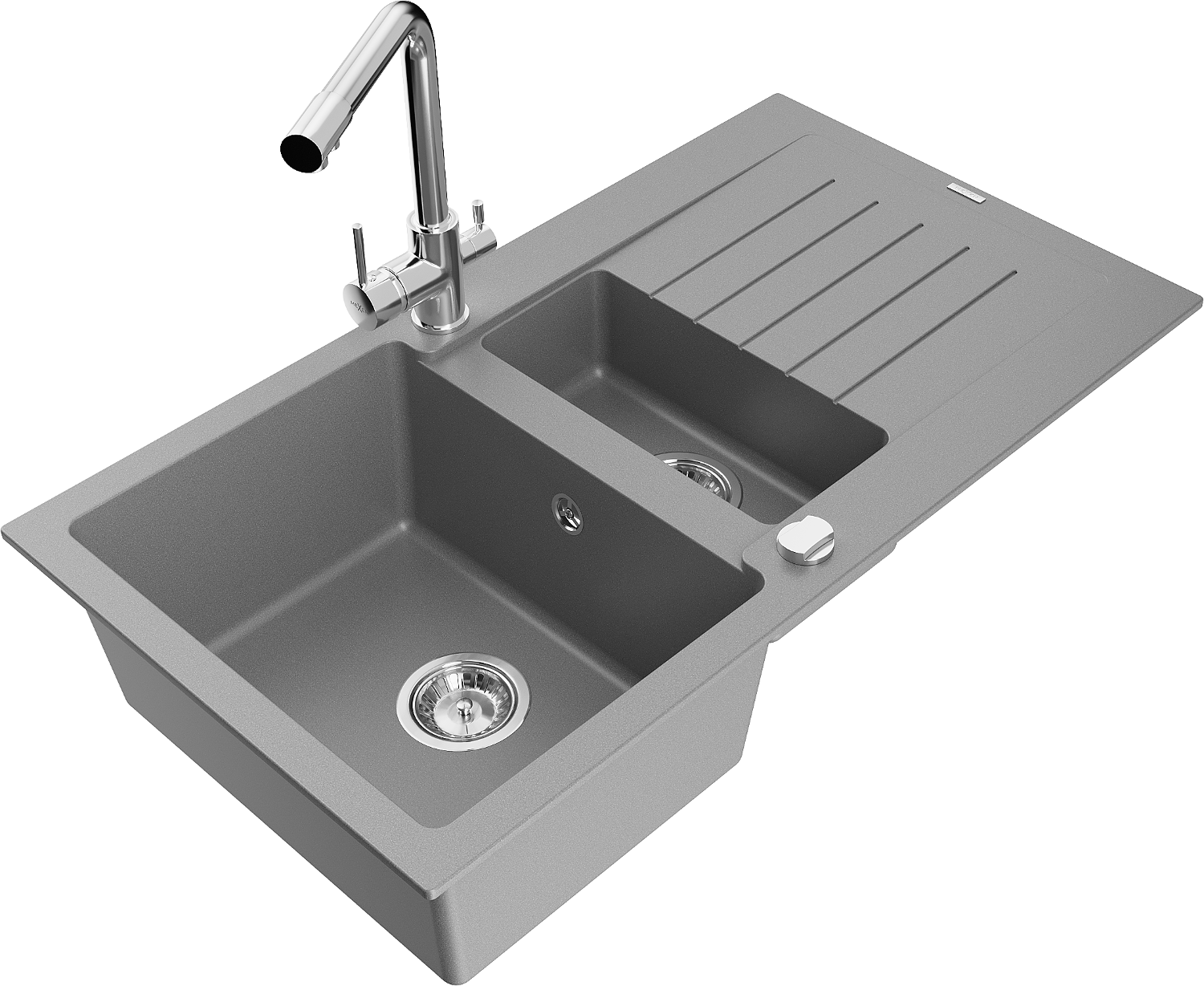D'Uewerfläch vum Spullbecken ass ganz gutt gehärt, et ass aussergewéinlech resistent géint mechanesch Schied a Kratzer. De bestännege Materialausféierung erlaabt Iech d'gutt Ausgesinn vum Spullbecken fir vill Joeren ze genéissen.