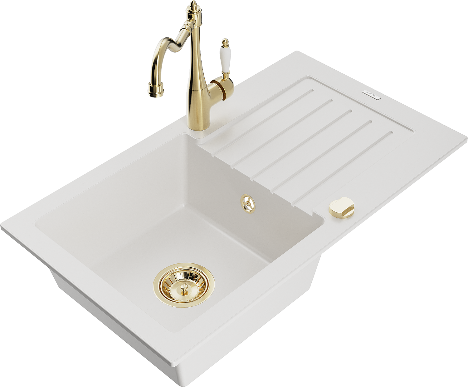 Mexen Pablo Granit-Spullsteen mat enger Kummer mat Oflaaf an Kichekran Carla, wäiss - 6510-20-670700-50