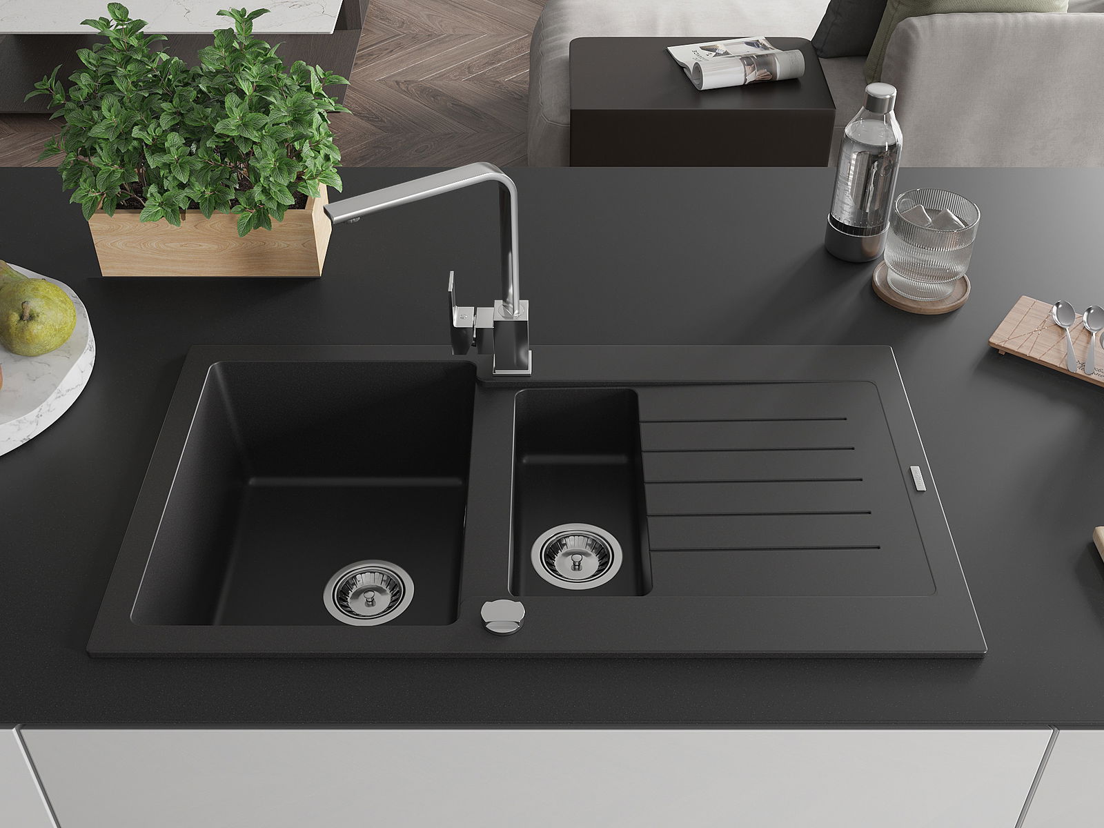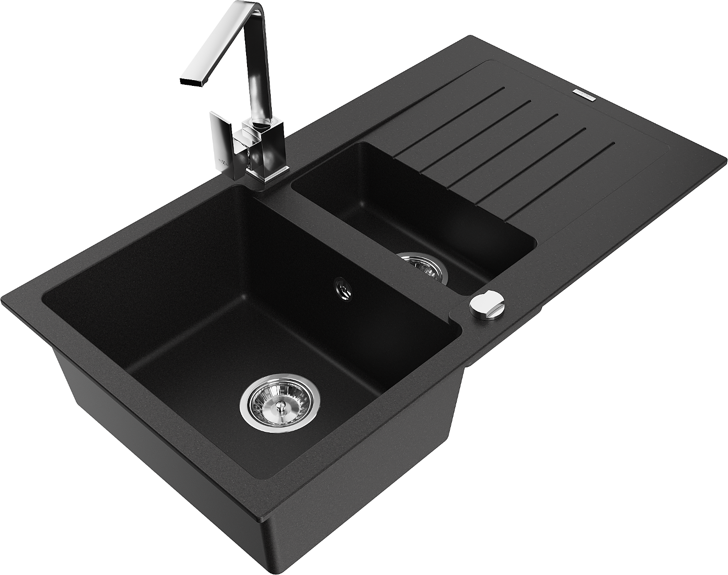 Mexen Matias Granit-Ëvier 1,5-Schëll mat Ofleefberäich a Kichendusch Rita, schwaarz - 6502-77-670300-00