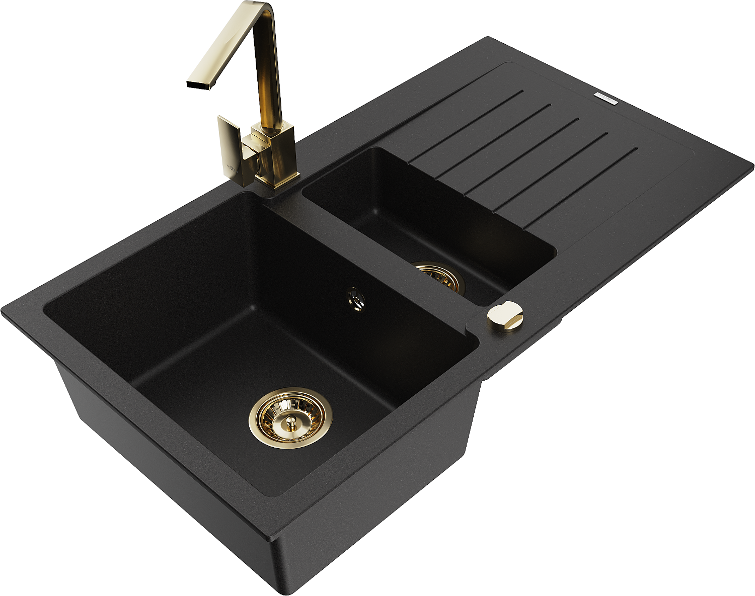 Den Spullsteen huet 2 virberäitet Lächer mat engem Duerchmiesser vun 35 mm, déi selbststänneg ausgeschloen kënne ginn. Se kënne fir d'Montage vun engem Flëssegkeetsspender benotzt ginn, deen d'Präsenz vu Plastikfläschen an der Kichen eliminéiert an hir en elegant Finish gëtt.