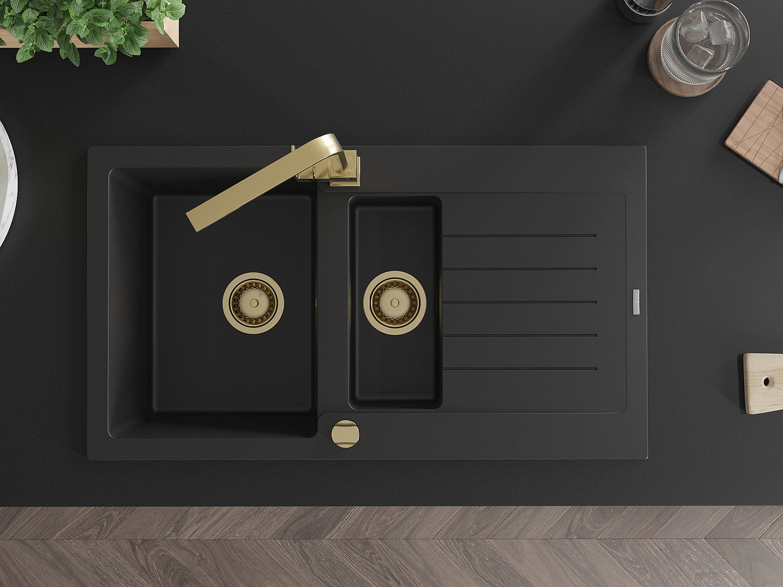 Den Ëmwäschbecken ass aus héichwäertege Granit gemaach. Et stellt eng elegant awer virun allem praktesch Ergänzung fir all Kichen duer, onofhängeg vun hirem Stil. Déi héich Qualitéit an Haltbarkeet vum Granit suergen fir méi järelaang Benotzung.