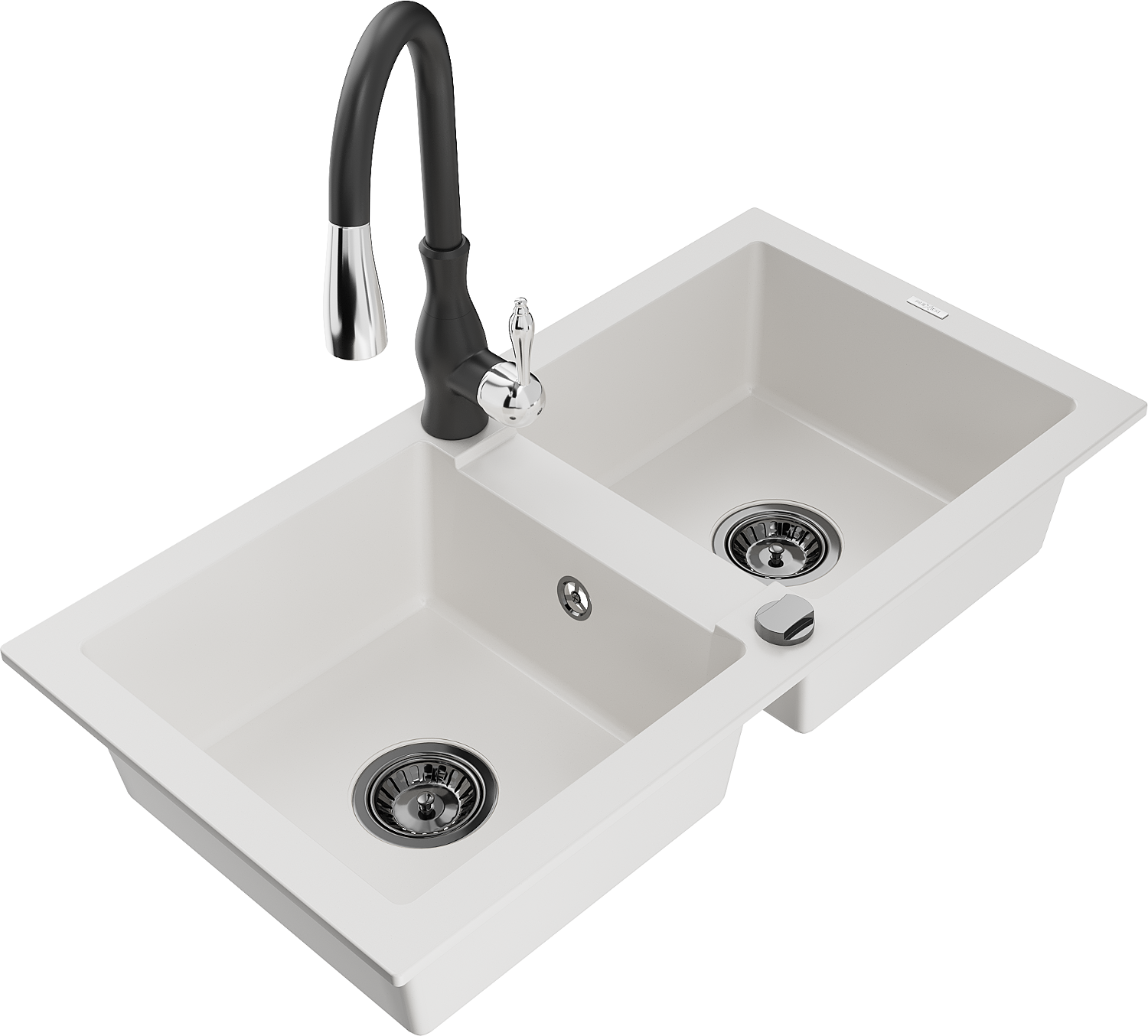 Mexen Mario 2-Kammer Granitspullmatt mat Spulkouche Savita, wäiss - 6504-20-672601-70