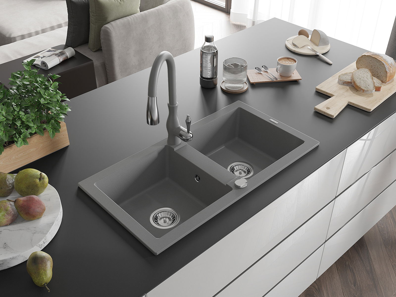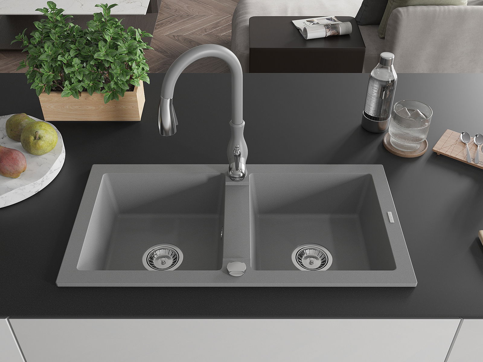 Mexen Mario Granit-Ëvier mat 2-Kummers mat Kichenkran Savita, gro - 6504-71-672601-71