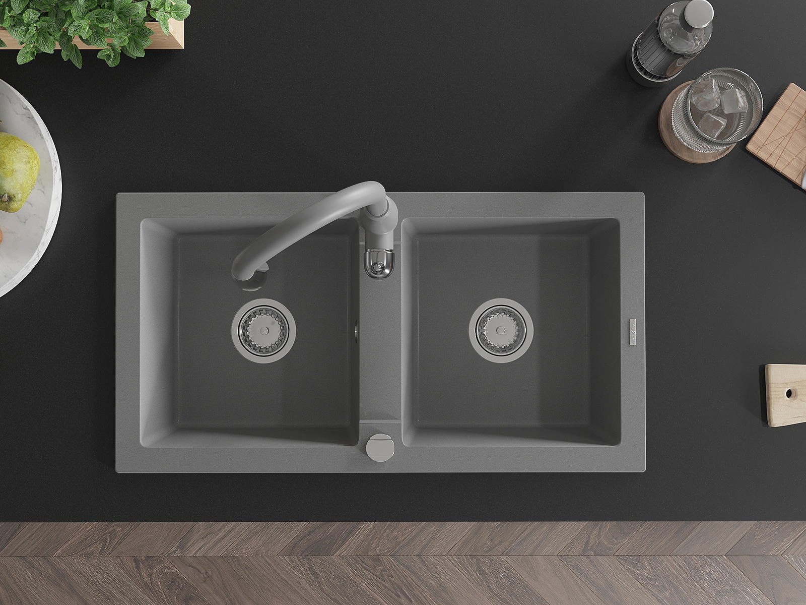 Den Ëmwäschbecken ass aus héichwäertege Granit gemaach. Et stellt eng elegant awer virun allem praktesch Ergänzung fir all Kichen duer, onofhängeg vun hirem Stil. Déi héich Qualitéit an Haltbarkeet vum Granit suergen fir méi järelaang Benotzung.