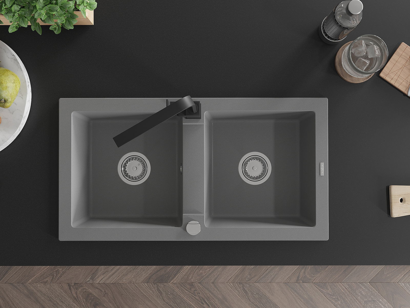 Den Ëmwäschbecken ass aus héichwäertege Granit gemaach. Et stellt eng elegant awer virun allem praktesch Ergänzung fir all Kichen duer, onofhängeg vun hirem Stil. Déi héich Qualitéit an Haltbarkeet vum Granit suergen fir méi järelaang Benotzung.