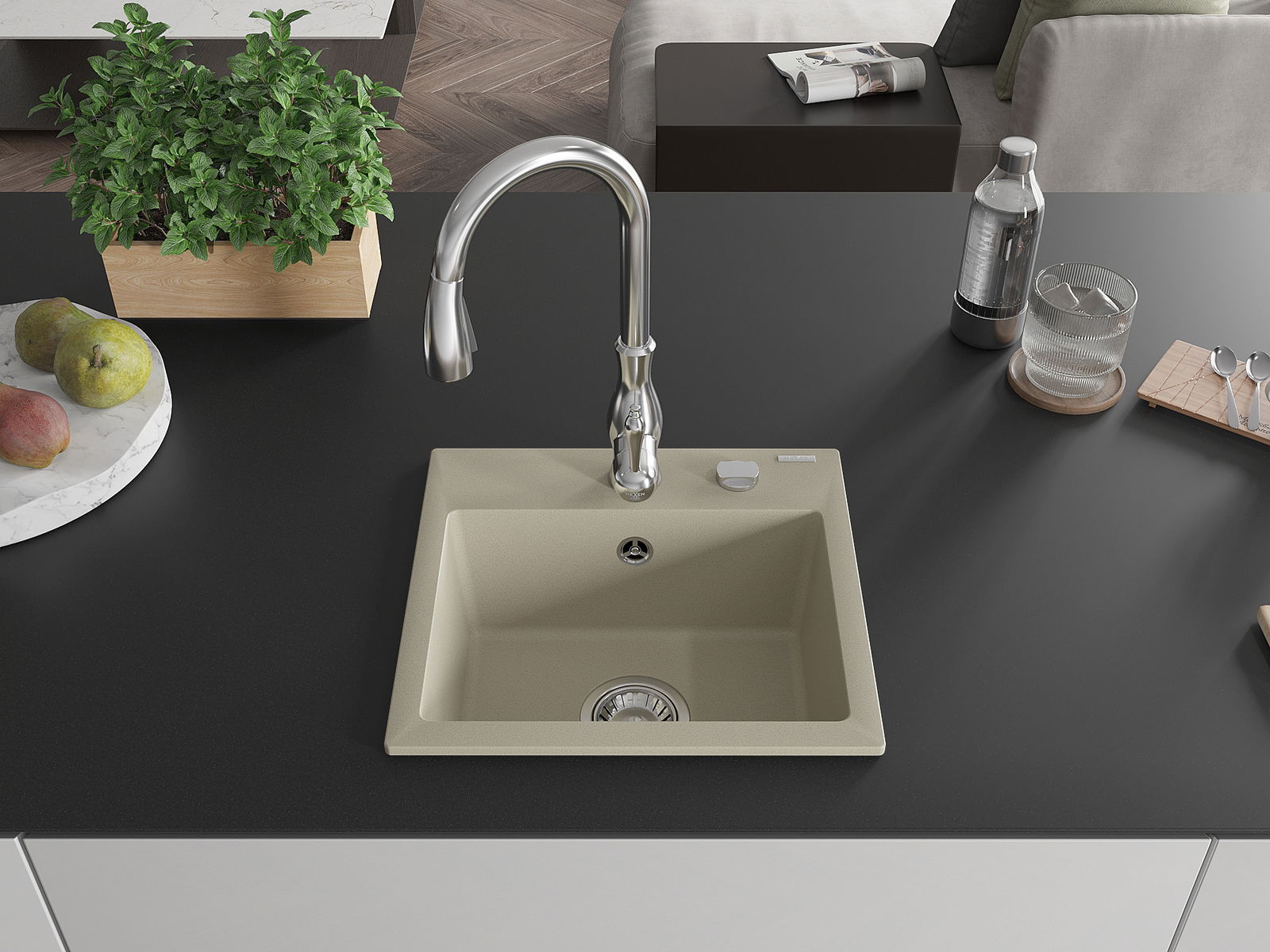 Mexen Milo Granit Ubauch 1-Schoss mat Kichebatterie Savita, beige - 6505-69-672601-00