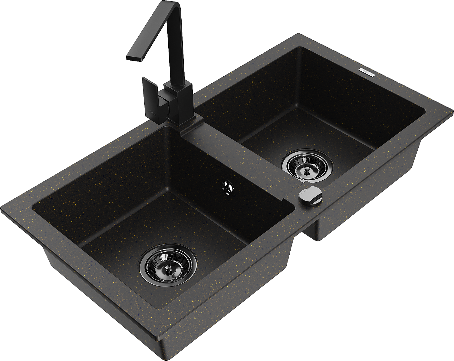 Mexen Mario granitéiert Duebelspull mat Kichenhahn Rita, schwaarz/gëllene Metallic - 6504-75-670300-70-B