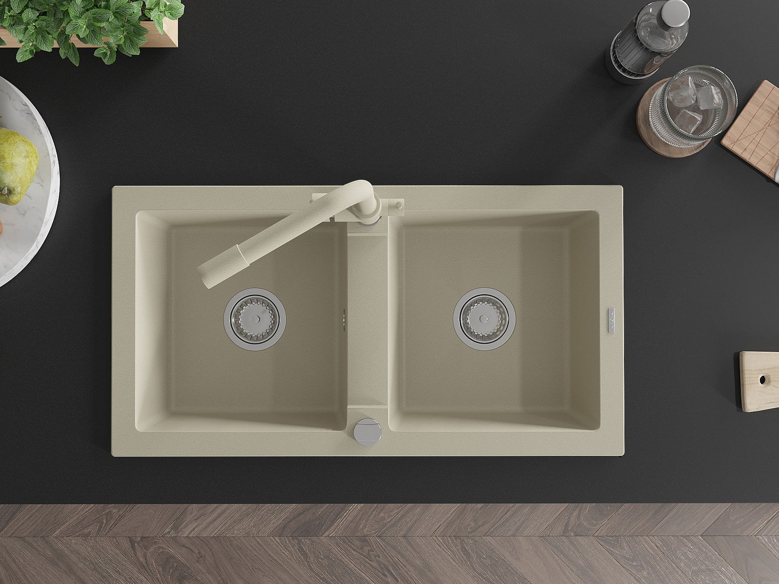 D'Uewerfläch vum Spullstee ass fleck- a verfärbungsresistent, wat se einfach ze botzen mécht an hir Faarf iwwer eng laang Zäit vum Gebrauch behalen léisst. Esthetesch an praktesch Ergänzung fir all Kichen.