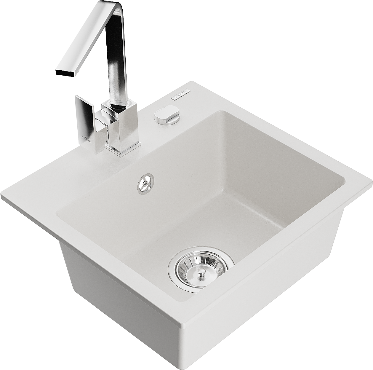 Mexen Milo Granit-Spullsteen mat 1 Komor mat Kichekrunn Rita, wäiss - 6505-20-670300-00