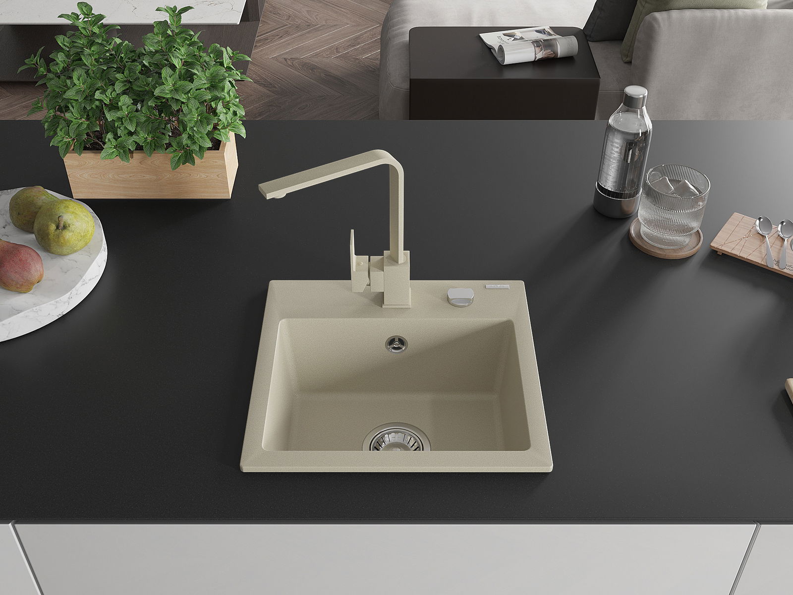 D'Uewerfläch vum Spullstee ass fleck- a verfärbungsresistent, wat se einfach ze botzen mécht an hir Faarf iwwer eng laang Zäit vum Gebrauch behalen léisst. Esthetesch an praktesch Ergänzung fir all Kichen.