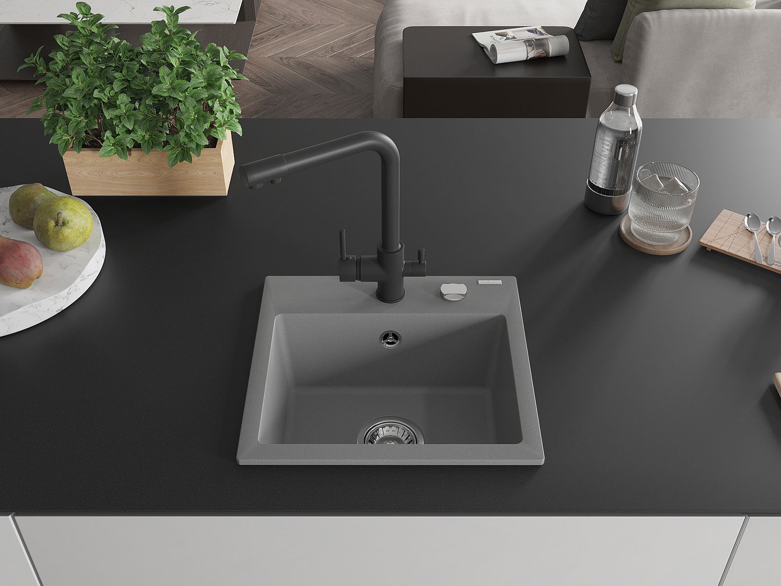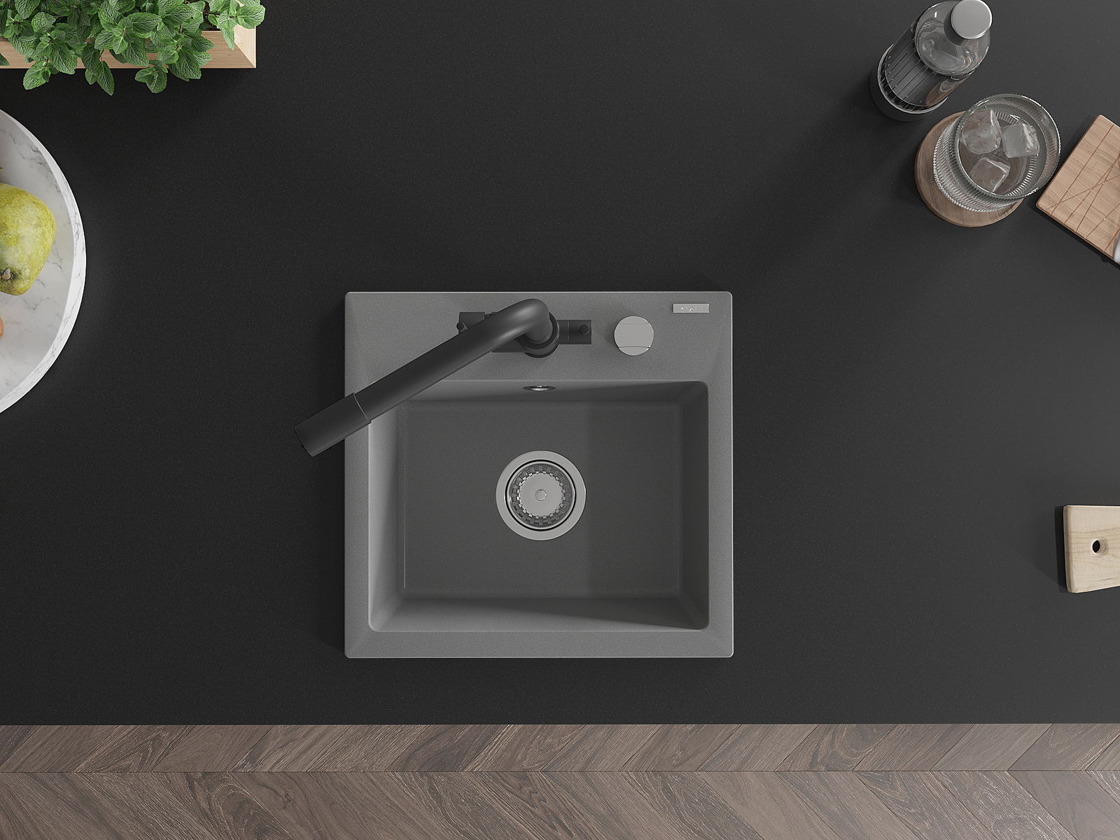 Mexen Milo Granit-Ëvier mat 1-Kummer mat Kichekran Duero, gro - 6505-71-671600-70