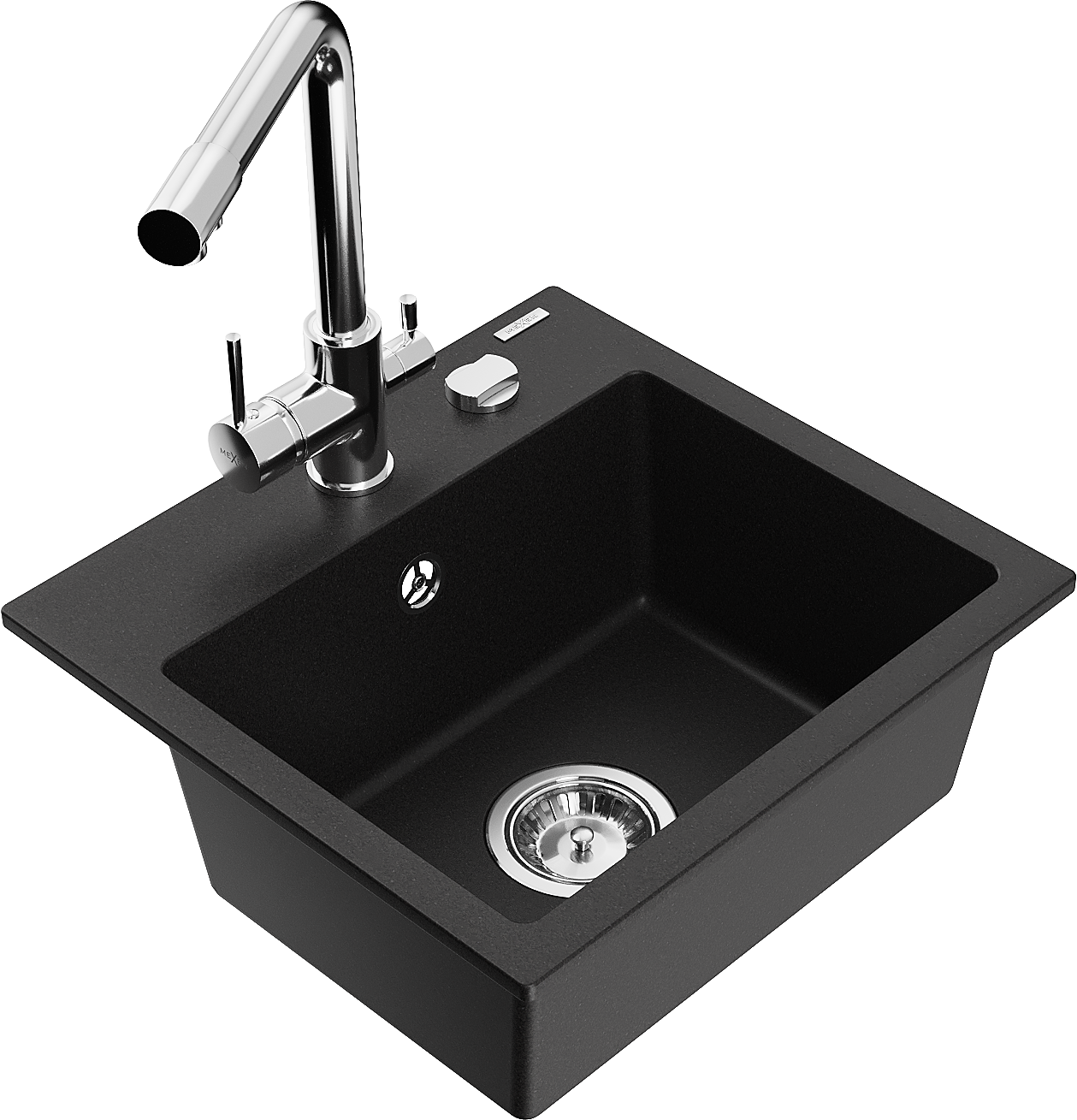 Mexen Milo granit Entwässerung 1-Kammer mat Kichenkran Duero, schwaarz - 6505-77-671600-00
